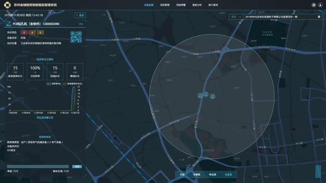例如,某客户在疫情期间无法按时复工复产,提出租金展期申请。通过智能租后平台,苏州金租可以在第一时间核实客户真实情况,掌握租赁物的位置、工作时间、运营效率等关键数据,判断它们在疫情期间是否确实停运,进而酌情予以租金展期或还款计划调整,帮助客户渡过难关。